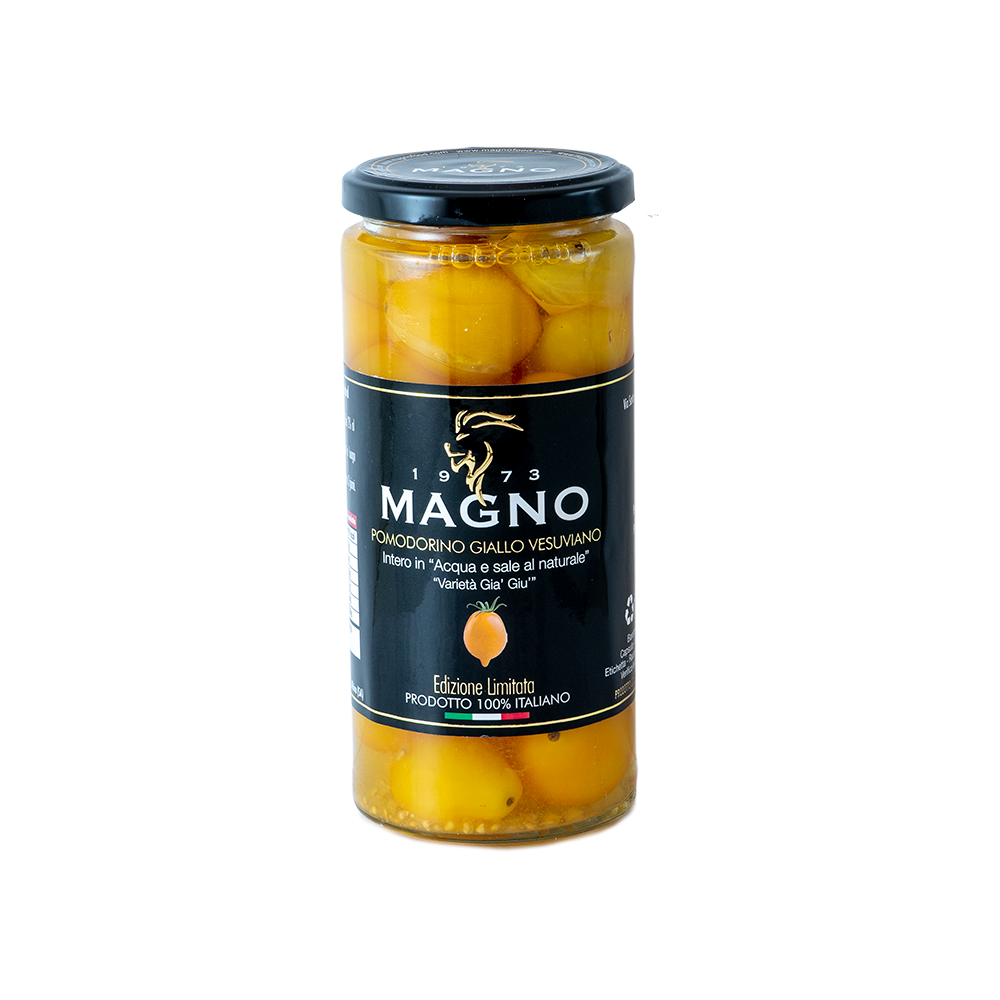 Intero in succo di Pomodorino del Piennolo del Vesuvio DOP. Barattolo in vetro di 550 grammi Peso netto: 550 g Vaso: 580 ml Peso sgocciolato: 330 gDescrizione