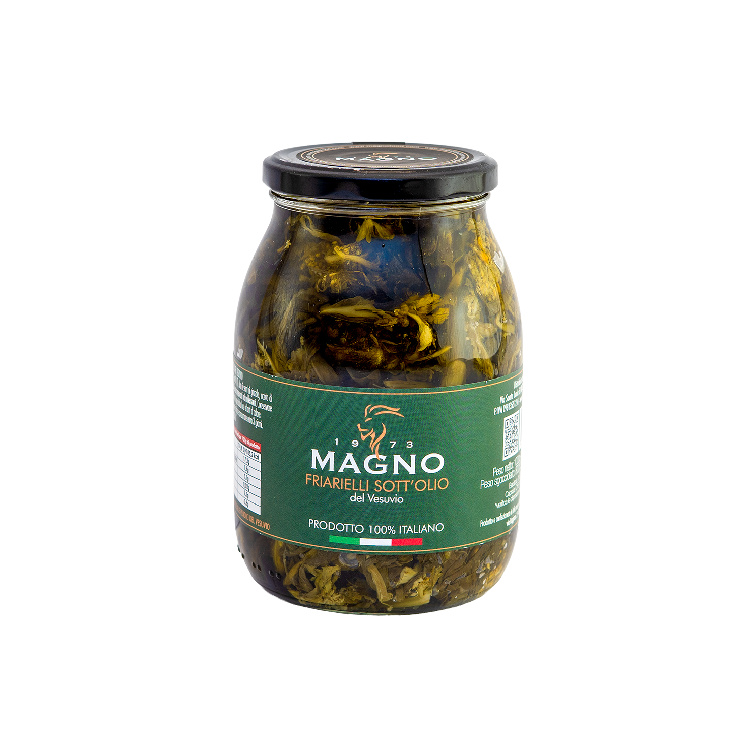Il Friarielli del Vesuvio sott’olio proposto da Magno 1973 rappresenta l’apice del gusto gourmet. Ogni passaggio, dalla raccolta alla preparazione, è eseguito con cura artigianale per preservare intatti aroma e freschezza. Gli steli di friarielli vengono accuratamente selezionati, sottoposti a un processo di conservazione sott’olio che ne esalta il sapore, conferendo loro una consistenza morbida e un aroma avvolgente.